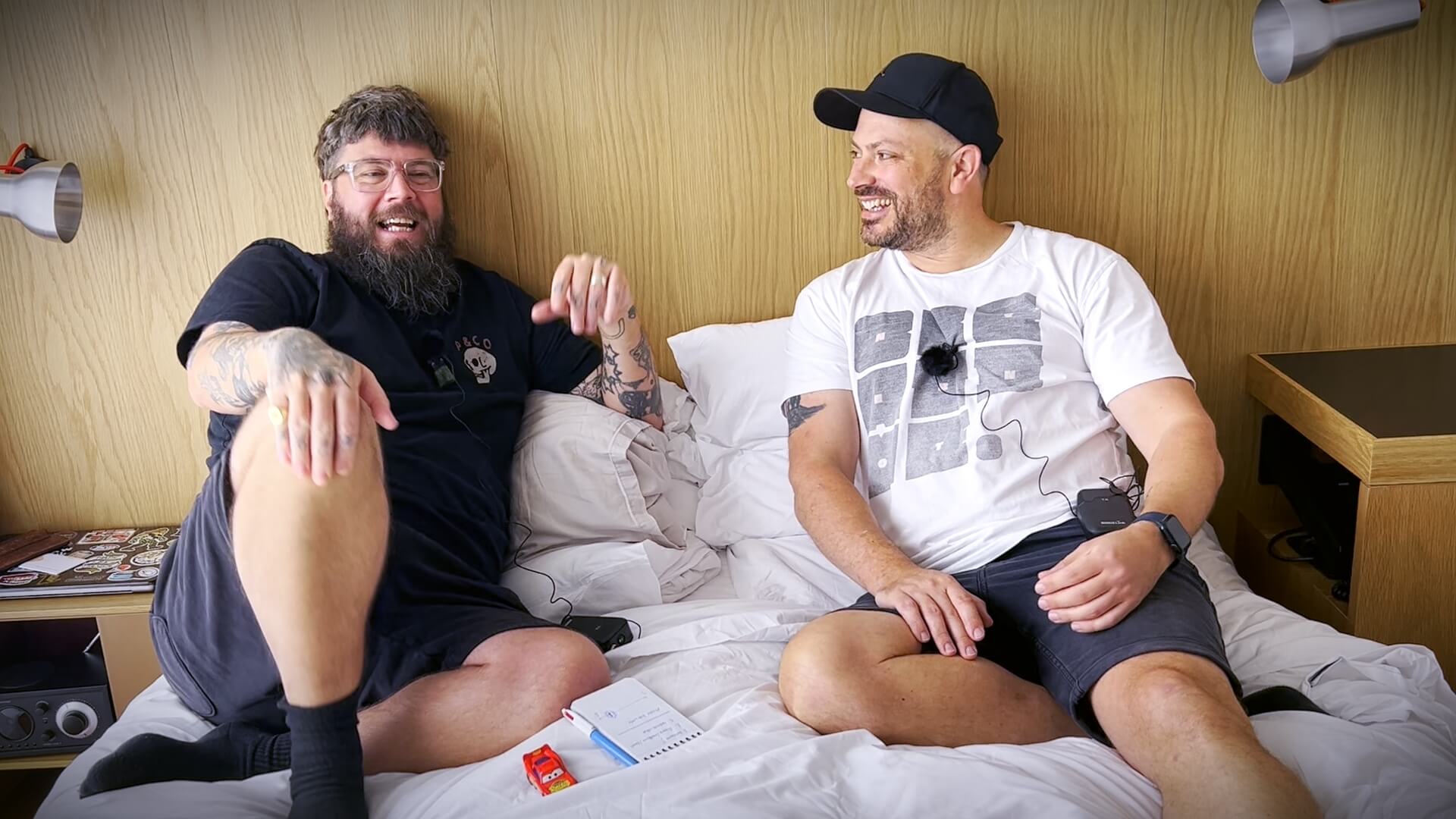 On-location setup: When the host and designer James Martin crossed paths at a conference, we kept it simple: an iPhone and two lav mics, recorded from a hotel bed. The gear was minimal, but we advised on mic placement and graded the Apple Log footage to get the most out of what we had—a DIY setup that still held its own.