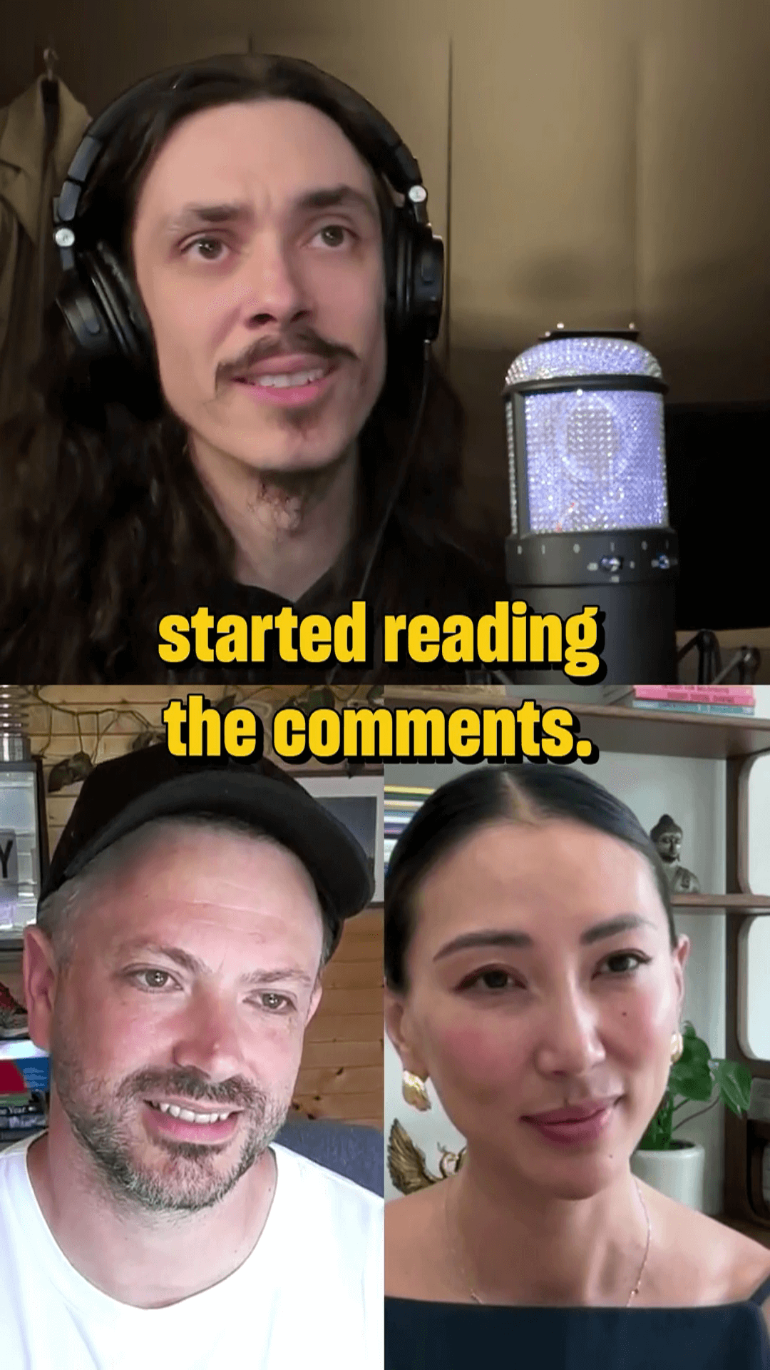 Remote interview: A multicam setup brings together both co-hosts and guest Lubalin—an internet-famous musician known for his viral videos—in a polished, high-quality remote conversation.